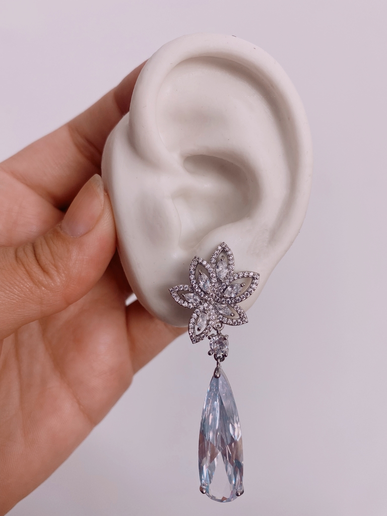 BRINCO FLORAL CRAVEJADO EM MICROZIRCÔNIAS COM GOTAS DE ZIRCÔNIAS.