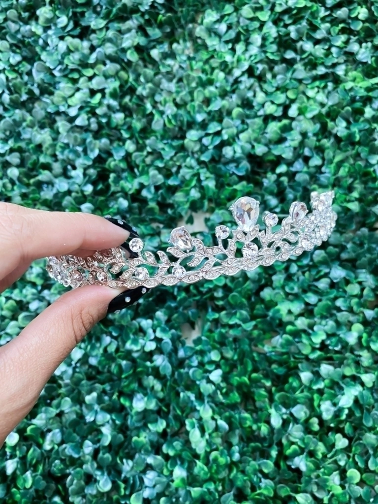 COROA DE CASAMENTO COM BANHO DE RÓDIO BRANCO CRAVEJADA EM STRASS.